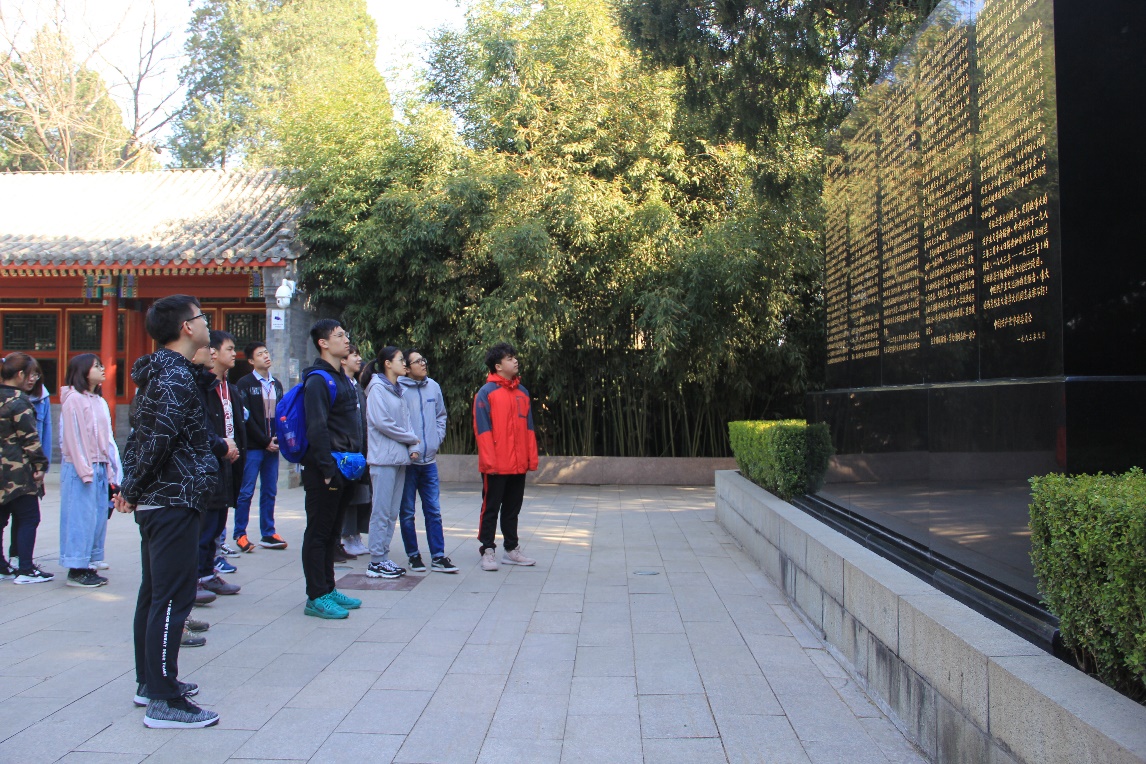 在祭奠活动之前,同学们提前温习了《建党伟业》、《十六年前的回忆》等有关李大钊先生的图文影音资料。在烈士陵园,同学们向李大钊先生献花、鞠躬、默哀,认真学习陈列馆中有关李大钊的先进事迹。在革命先烈的墓碑前,在跨越近一个世纪的史实资料前,同学们深切感受到李大钊先生不再只是教科书中的一个符号,还是一个活生生的,不仅有理想和大义,也有家庭和学业,还有奋斗和求索。正是这样更为丰满又具体的革命烈士形象,愈发强烈地激发了同学们的思想共鸣和敬仰之情。