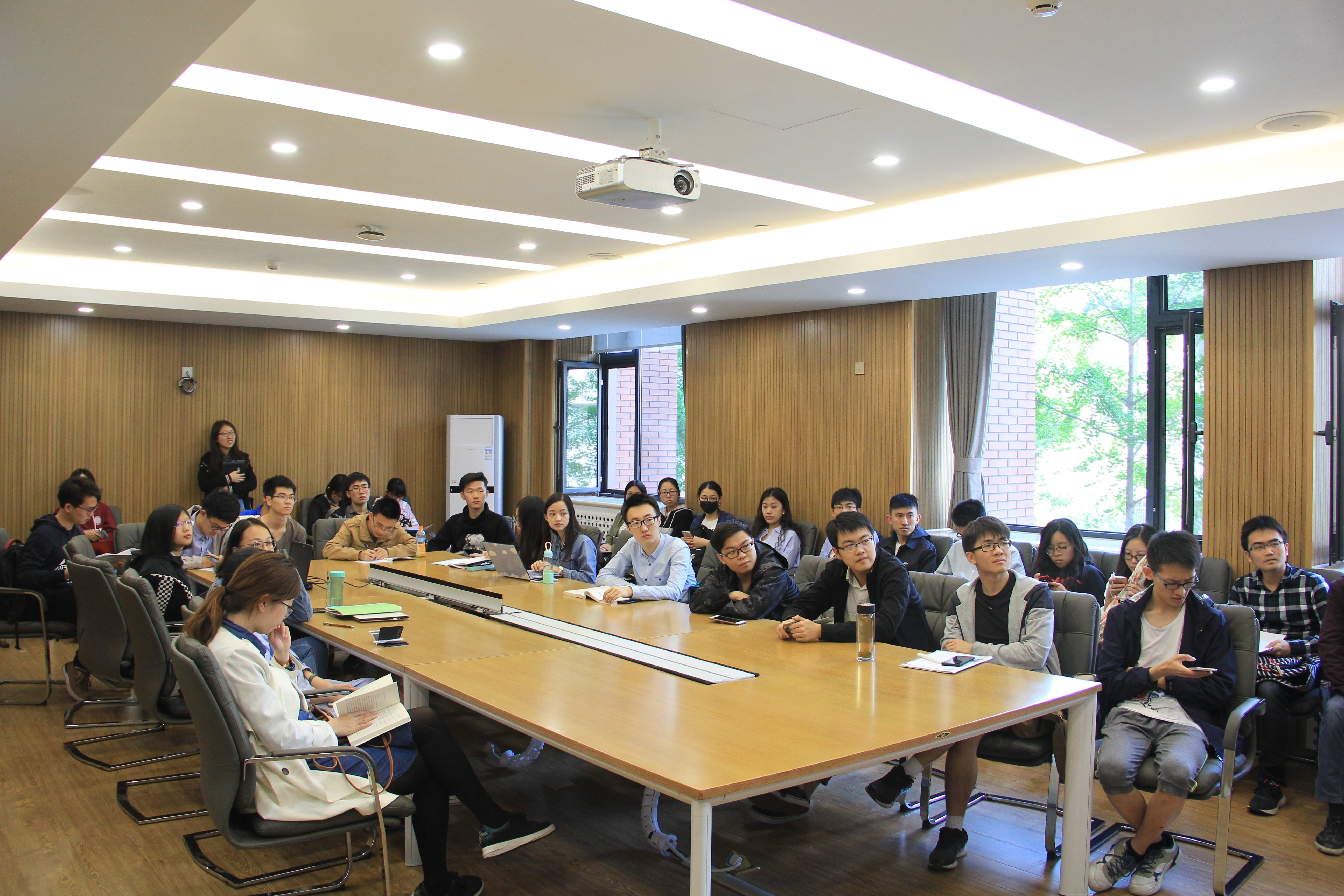 图7:师生在药学楼238会议室通过视频同步直播聆听讲座