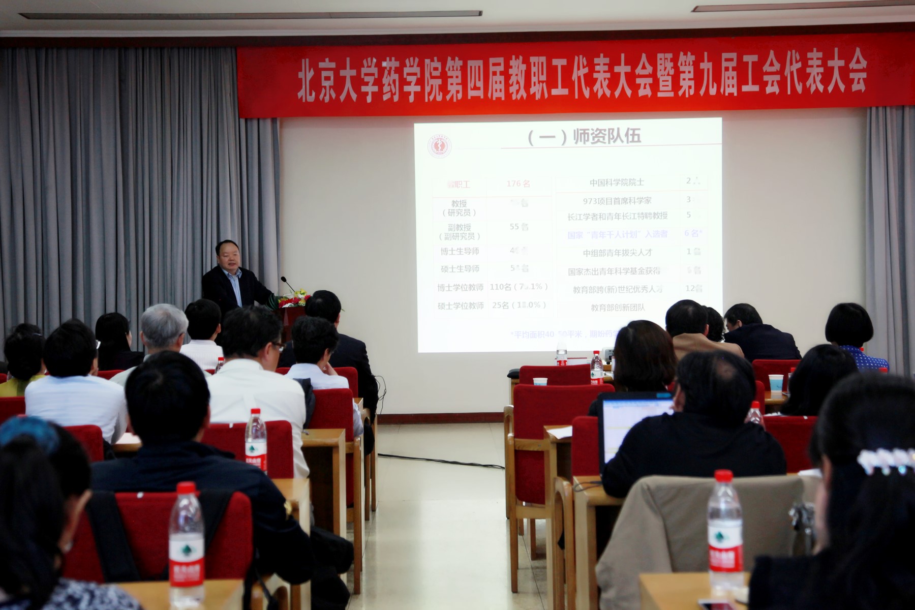 周德敏院长做了2016年学院工作报告。报告首先对2016年学院的主要工作做出系统的回顾和总结,肯定了我院在师资队伍、学科建设、教育教学、科学研究和对外交流合作等方面取得的成绩、亮点,同时也指出了同其他一流兄弟院校间差距和不足。并向大家阐述了今后的五年发展规划:以建设国际一流药学学科为核心目标,完善和发展现代大学(学院)制度建设,落实北京大学综合改革方案,打造与国际一流水平接轨的药学学科和满足国家需求兼具北大特色和优势的药物创新平台。
