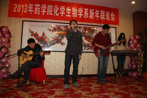 联谊会以孟令仪小朋友的《江南style》舞蹈拉开帷幕,当鸟叔的Style 遇见天真多才的小公主,“可爱多”孟令仪为大家带来了一份惊喜;无机组的小合唱,三首曲目,由温婉而励志及至狂放,带给了大家多样的精彩;糖化学组的乐队以一首《痛哭的人》将联谊会推向了高潮,告别痛哭的过去,面带微笑,迎接新的明天;程光北、高鹏超同学表演的吉他弹唱《情歌》打动了所有人的心;黄河清老师和阙琳玲同学的歌舞表演《望月》烘托出了化学生物学系师生团结一家亲的温暖氛围;田超老师的一首《精忠报国》慷慨激昂,唱出了愿为药学事业奉献一生的决心。穿插其中的互动游戏,使整个活动始终笑声不断、气氛热烈;“化太岁,保吉祥”为本命年的师生们送上了象征吉祥和美好的礼物。感染于热烈的气氛,徐萍和吕万良老师即兴为大家献上了一首《映山红》,一曲红歌祝福化学生物学系蒸蒸日上,不断取得新的成绩。